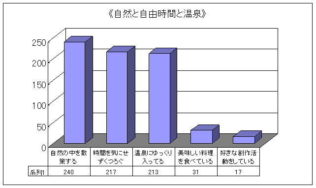 | ■リゾート地で「ゆったり・のんびり」と感じるキーワードは・・・《自然と自由時間と温泉》 |
